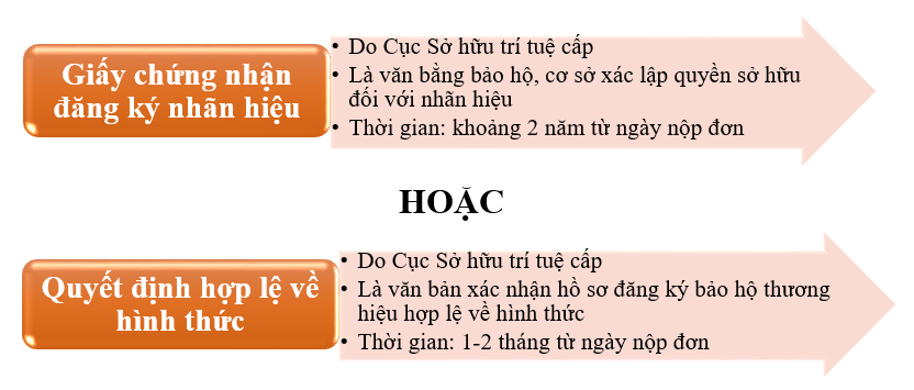 • Thẩm định nội dung (16-24 tháng từ ngày có kết quả thẩm định hình thức). Nếu đơn đăng ký nhãn hiệu đáp ứng yêu cầu bảo hộ, chủ đơn sẽ nộp phí cấp bằng và nhận Giấy chứng nhận đăng ký nhãn hiệu sau 3-4 tháng từ ngày nộp phí. Giấy chứng nhận đăng ký thương hiệu mà các sàn thương mại điện tử yêu cầu là kết quả của giai đoạn thẩm định này.
