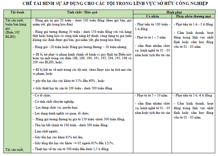 Hành vi xâm phạm quyền sở hữu công nghiệp của một cá nhân tổ chức có thể bị áp dụng biện pháp dân sự, hành chính hoặc hình sự. Trong đó hình sự là chế tài nặng nhất.