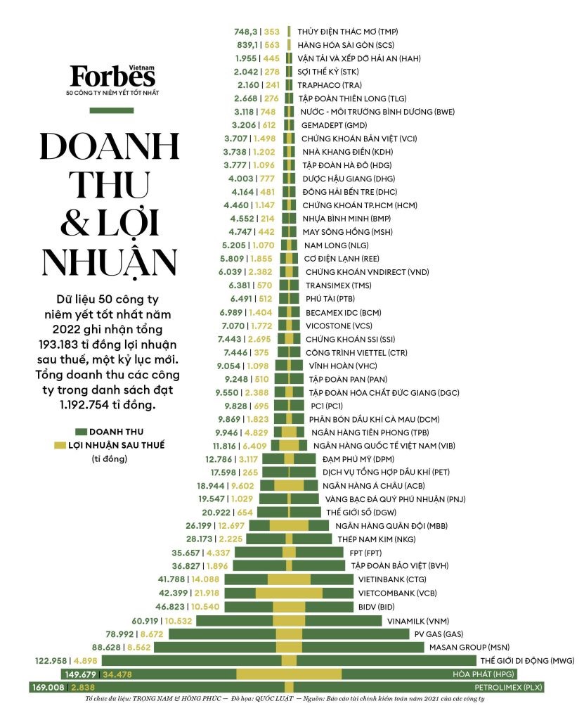 TOP 50 công ty niêm yết tốt nhất Việt Nam năm 2022. Nguồn ảnh: forbes.vn
