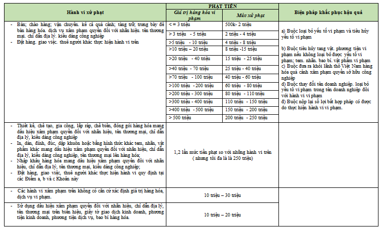 1. Mức xử phạt hành chính với hành vi Xâm phạm quyền đối với nhãn hiệu, chỉ dẫn địa lý, tên thương mại, kiểu dáng công nghiệp (Điều 11 Nghị định 99/2013/NĐ-CP)
